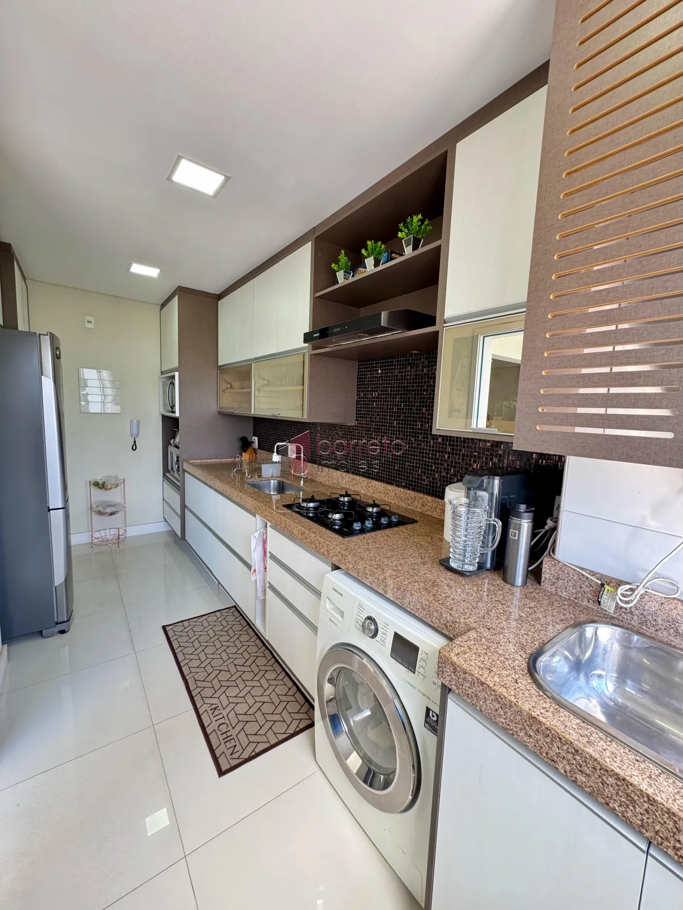 – Cozinha com armários planejados, cooktop e coifa;