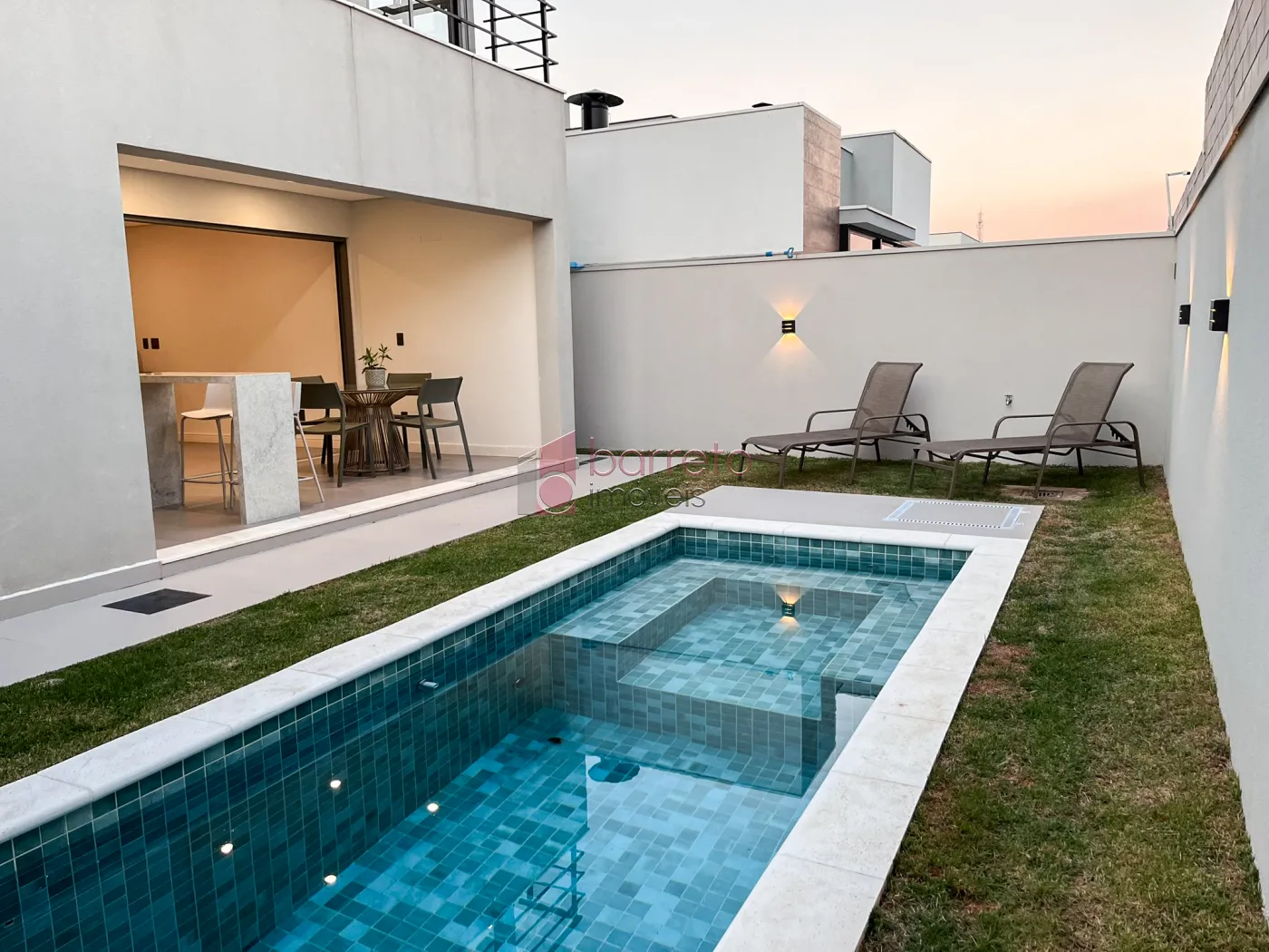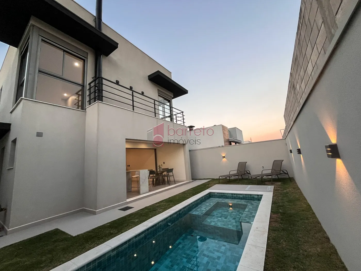 Casa com 238m² de área construída. Contém 03 suítes, todas com móveis planejados e venezianas automatizadas. Conta com salas integradas para 03 ambientes, lavabo, cozinha planejada integrada às salas e à área gourmet, que dispõe de churrasqueira, piscina e banheiro. Possui ainda área de serviço com armários planejados, 04 vagas de garagem (02 cobertas) e infraestrutura pronta para instalação de ar-condicionado em toda a casa.