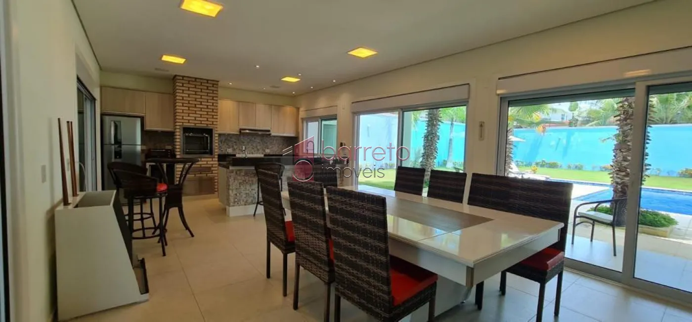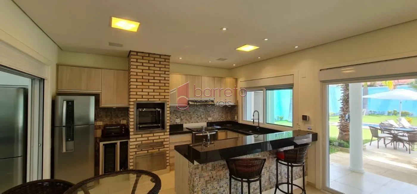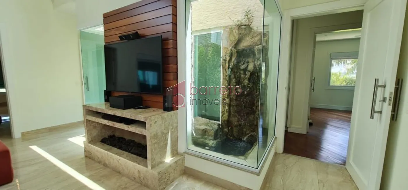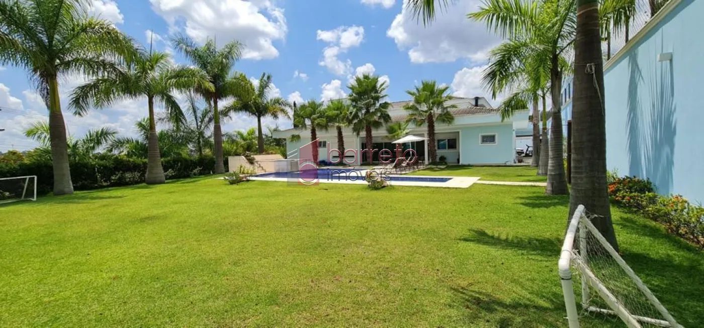 Casa com 482m² de área construída. Contém: 04 suítes com armários e ar condicionado, (sendo 01 master com closet e hidro), roupeiro, sala 02 ambientes com pé direito alto e lareira a gás, jardim de inverno, escritório, home theater com armários planejados, cozinha com ilha, mesa de granito e armários planejados, despensa, área de serviço, quarto de serviço, espaço gourmet integrado à cozinha, com balcão, armários e painel de TV, 02 banheiros externos, piscina com cascata e jacuzzi com hidro, campo de futebol, 09 Vagas, sendo 04 cobertas.