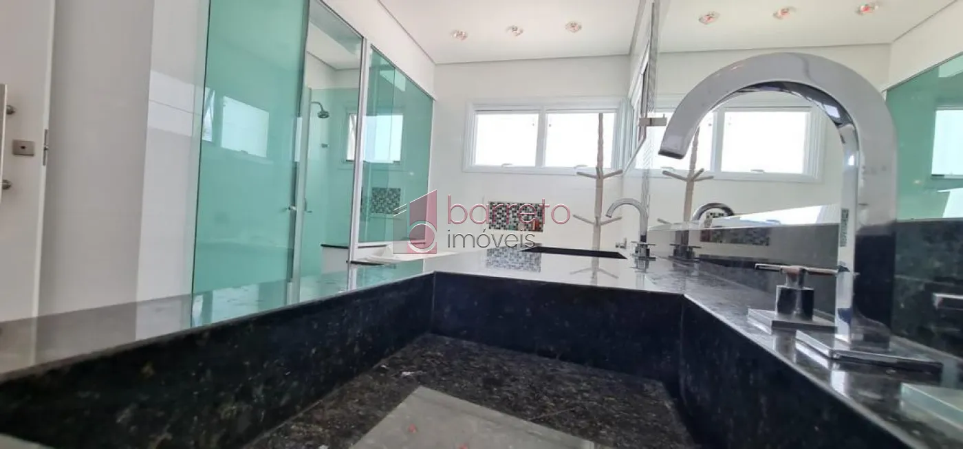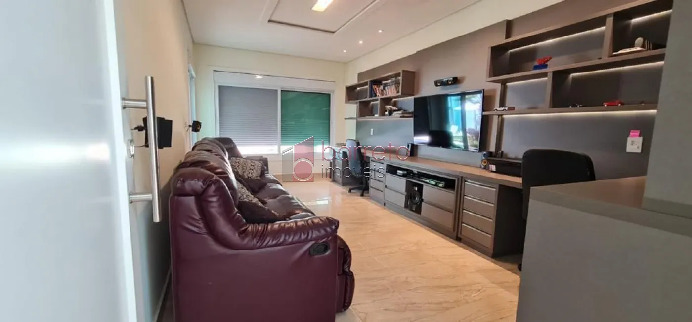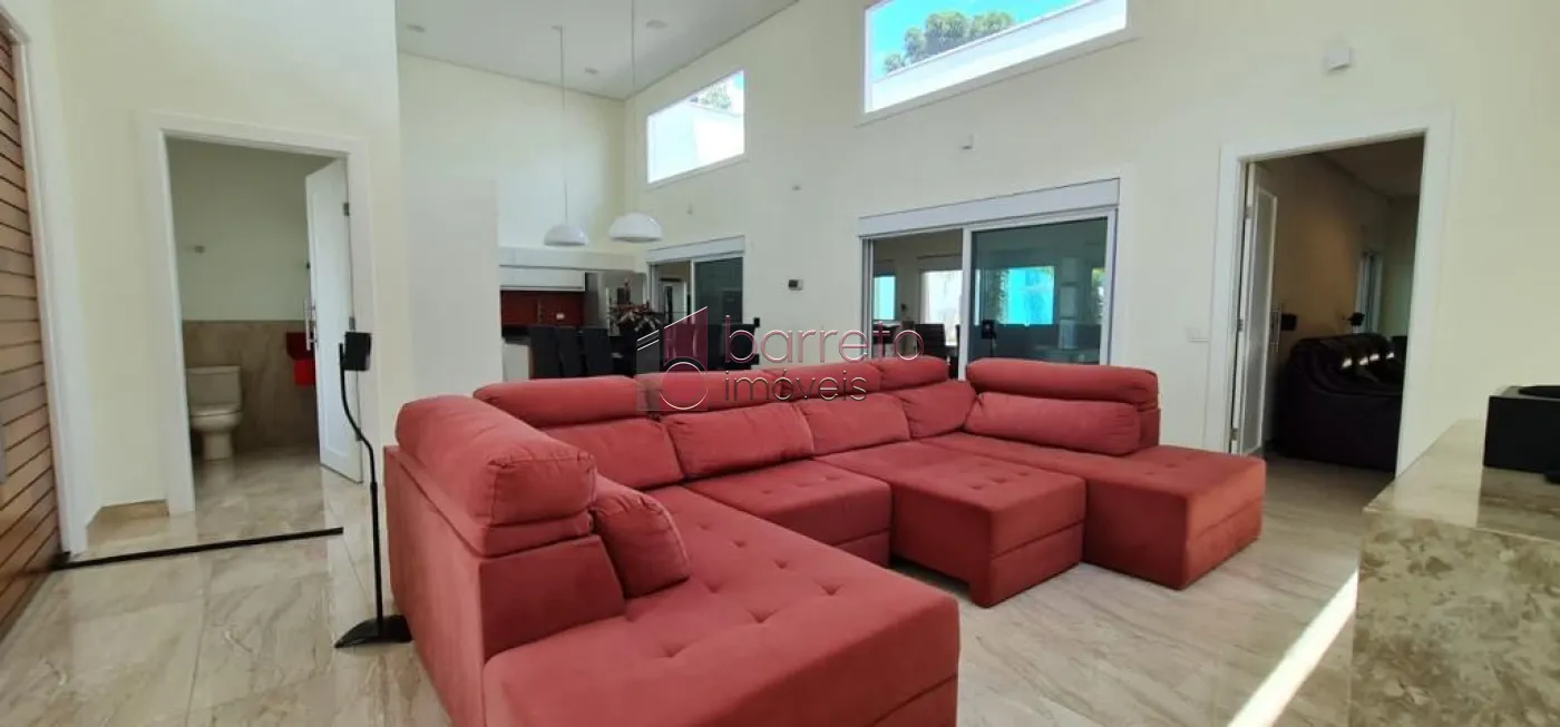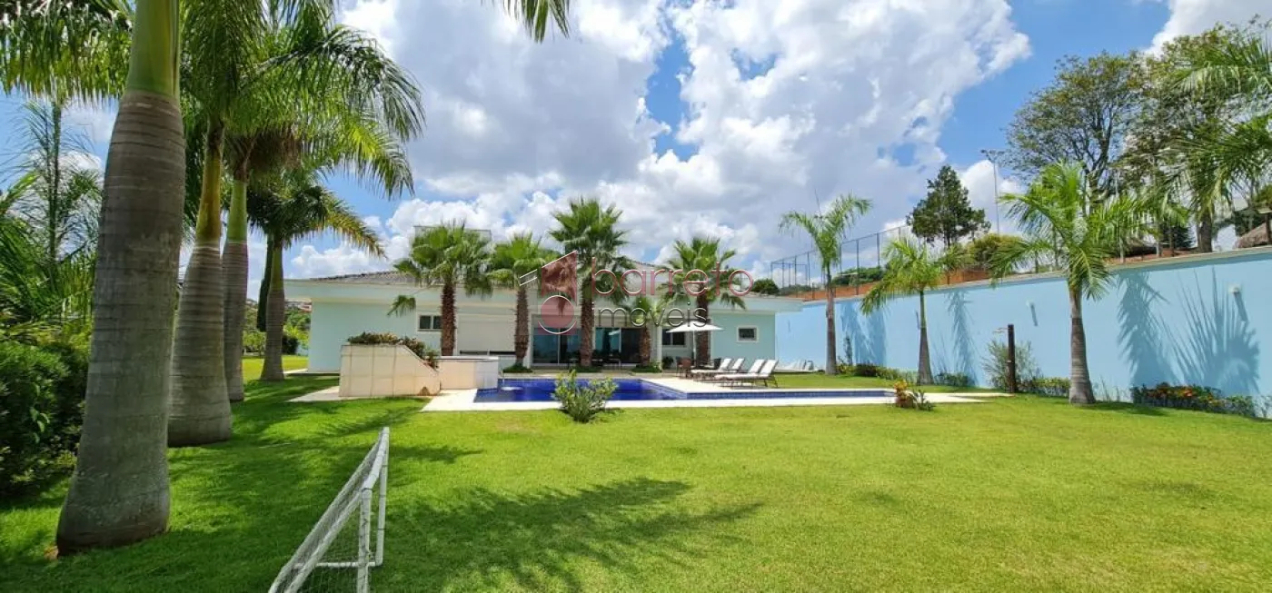 Casa com 482m² de área construída. Contém: 04 suítes com armários e ar condicionado, (sendo 01 master com closet e hidro), roupeiro, sala 02 ambientes com pé direito alto e lareira a gás, jardim de inverno, escritório, home theater com armários planejados, cozinha com ilha, mesa de granito e armários planejados, despensa, área de serviço, quarto de serviço, espaço gourmet integrado à cozinha, com balcão, armários e painel de TV, 02 banheiros externos, piscina com cascata e jacuzzi com hidro, campo de futebol, 09 Vagas, sendo 04 cobertas.