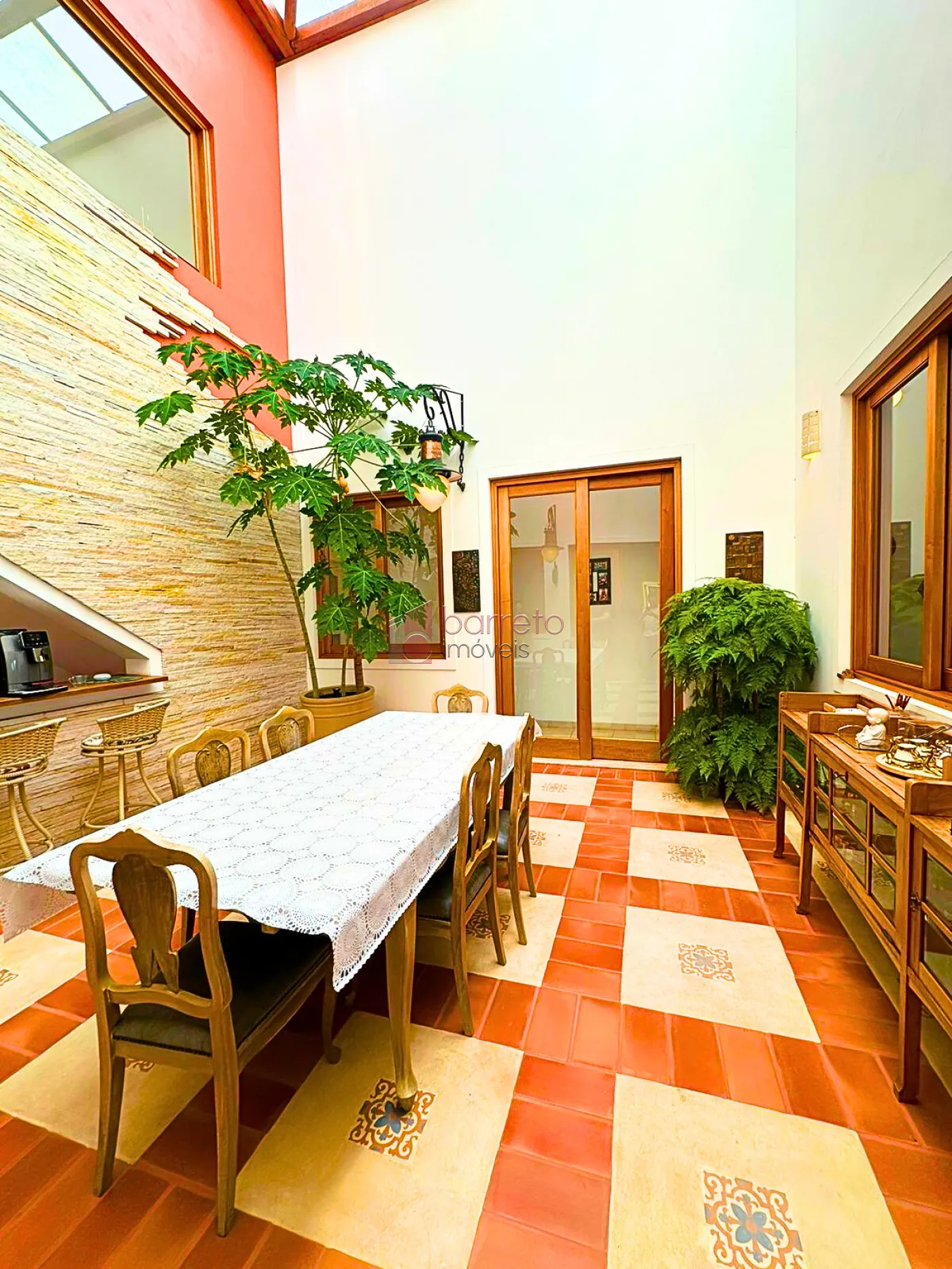 – Pé direito duplo com decorações rústicas.