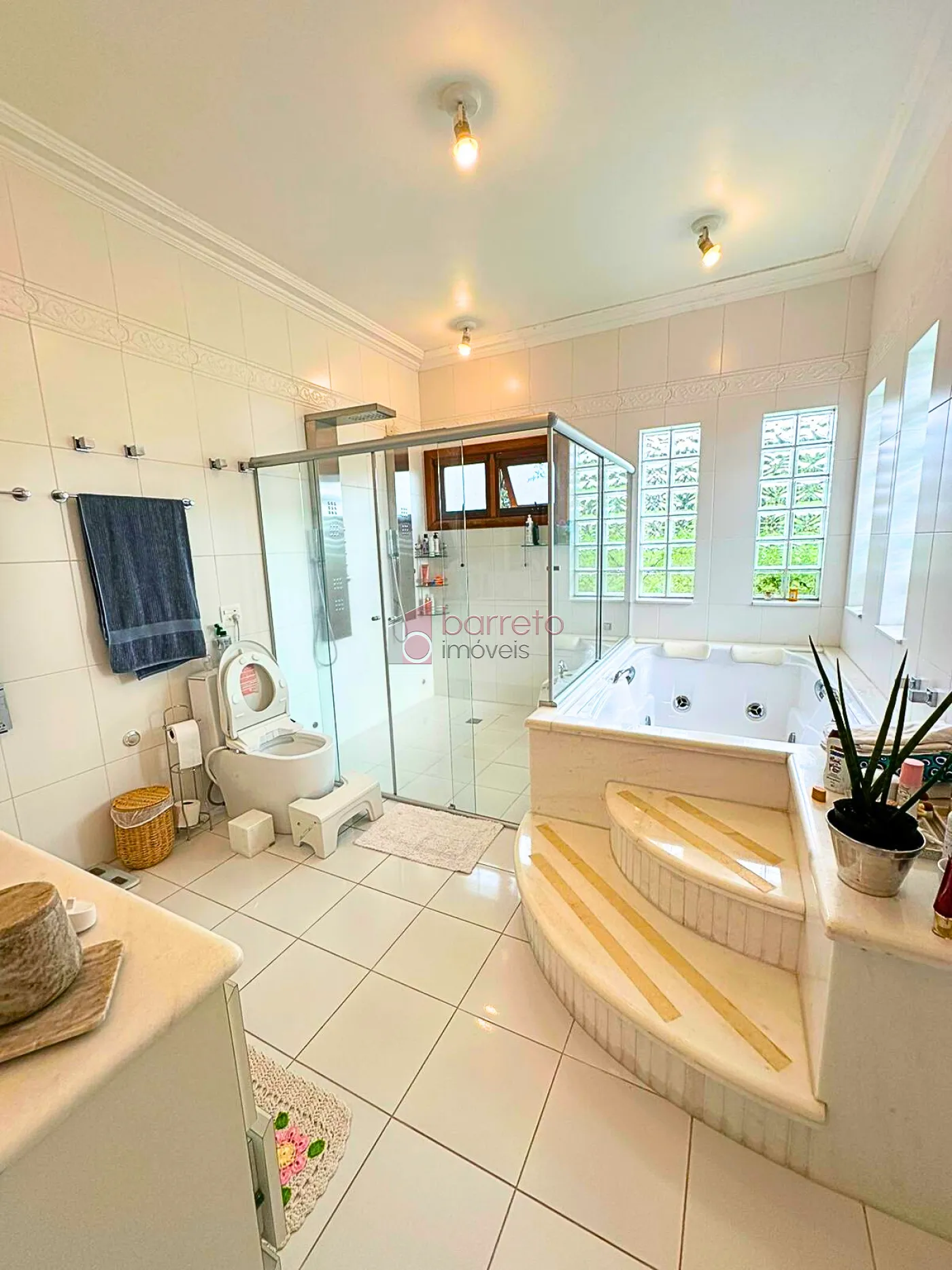 – 5 dormitórios, sendo 1 suíte master com closet, banheira de hidromassagem estilo SPA, chuveiros e pias duplas, vaso sanitário automatizado, único ambiente do piso superior com portas balcão e sacada;