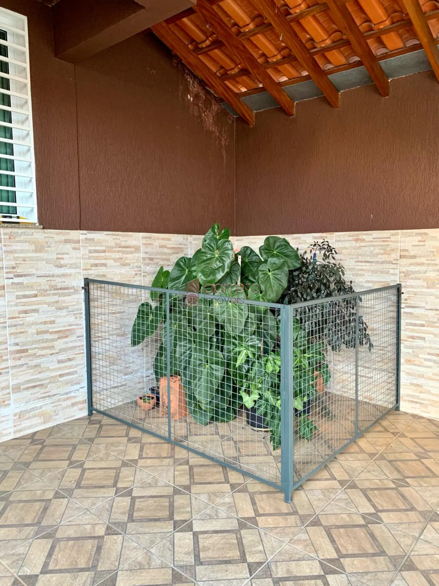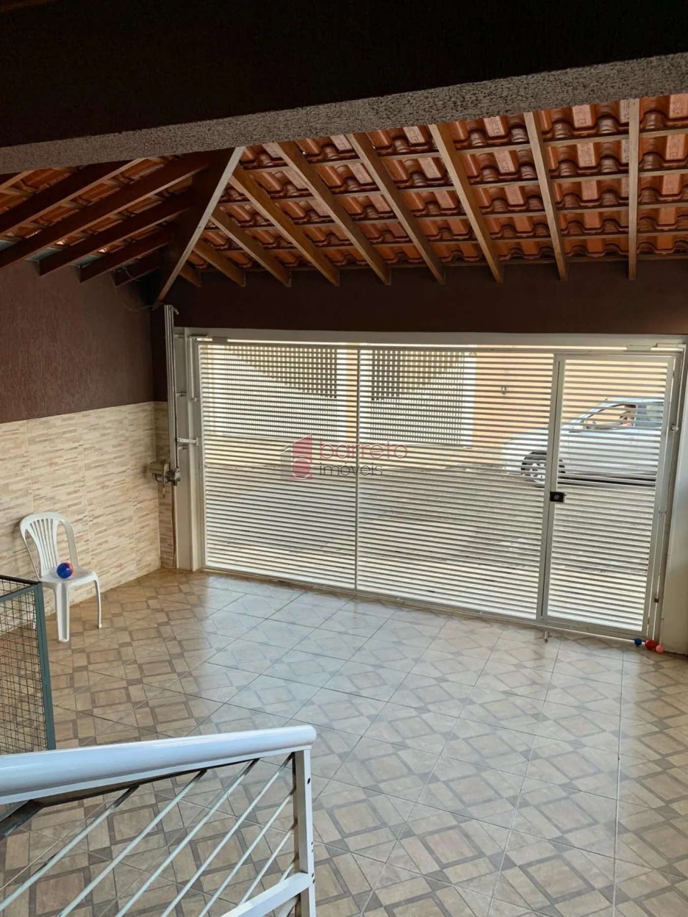 – 02 vagas de garagem cobertas com portão eletrônico, cerca elétrica e um deck elevado no quintal da frente.