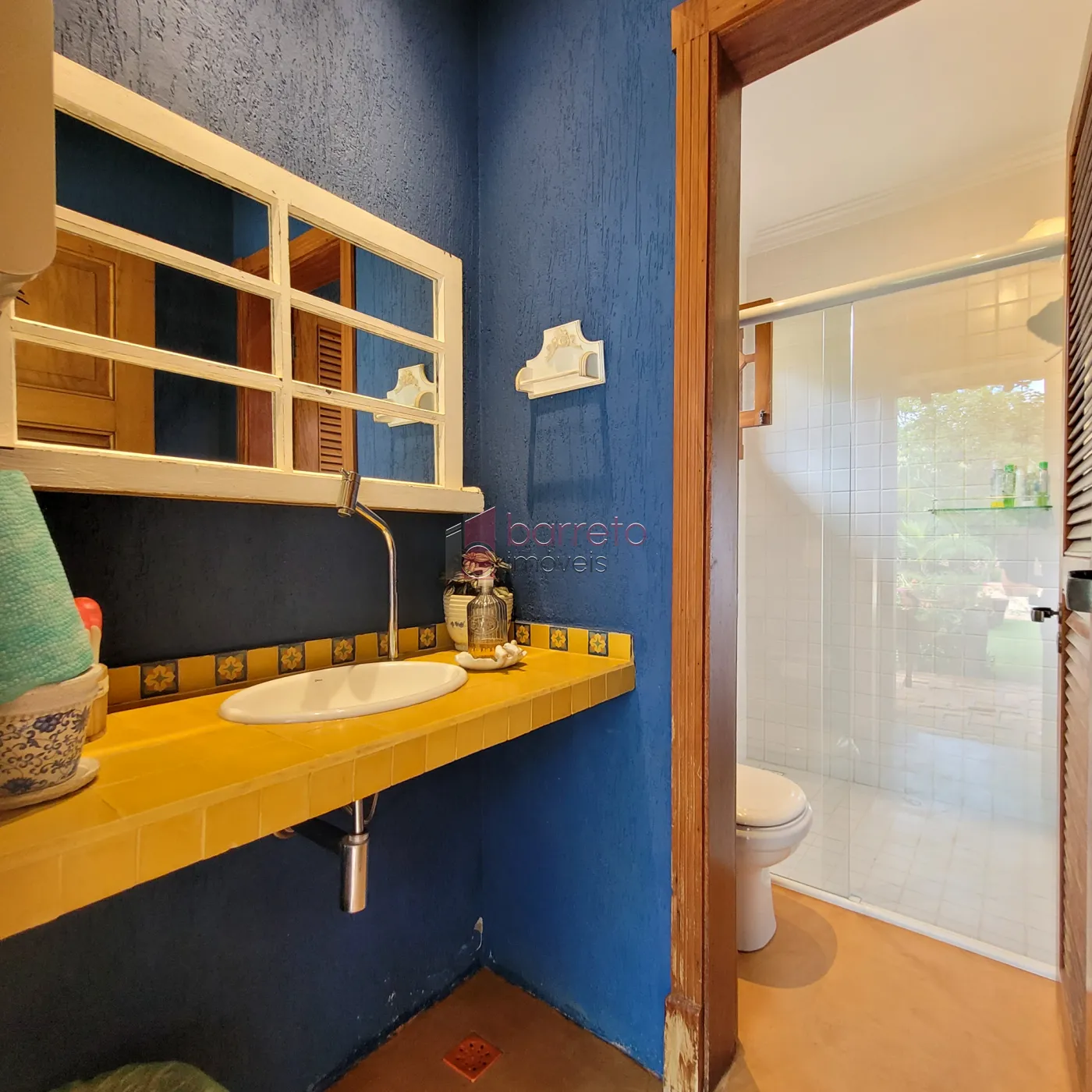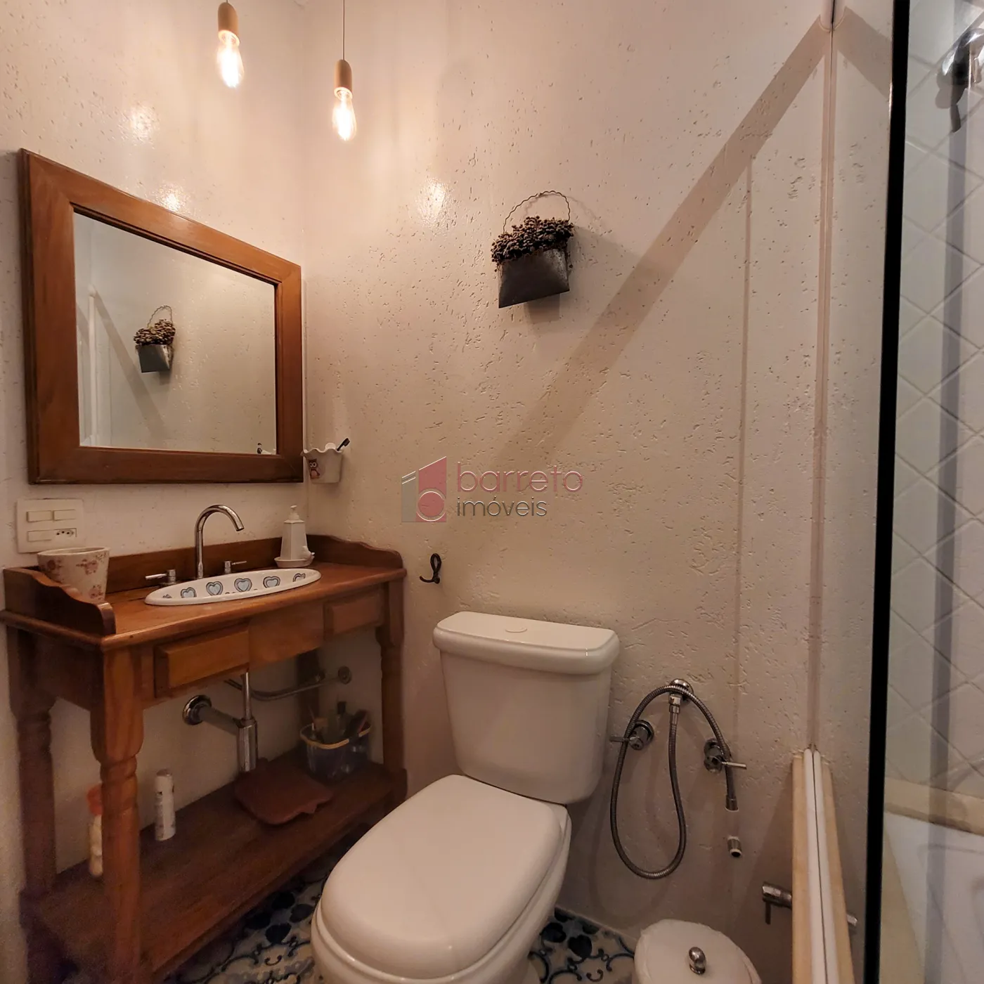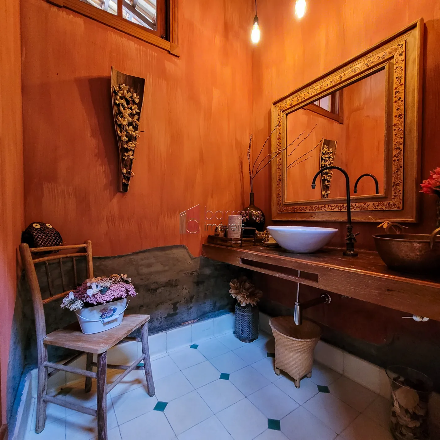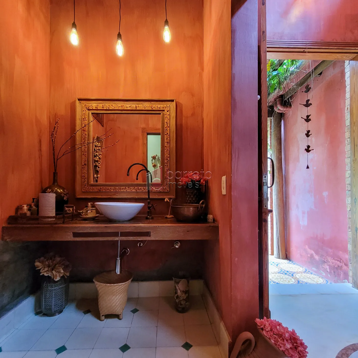 – Pias dos banheiros pintas à mão por uma artista, combinando com os pisos;