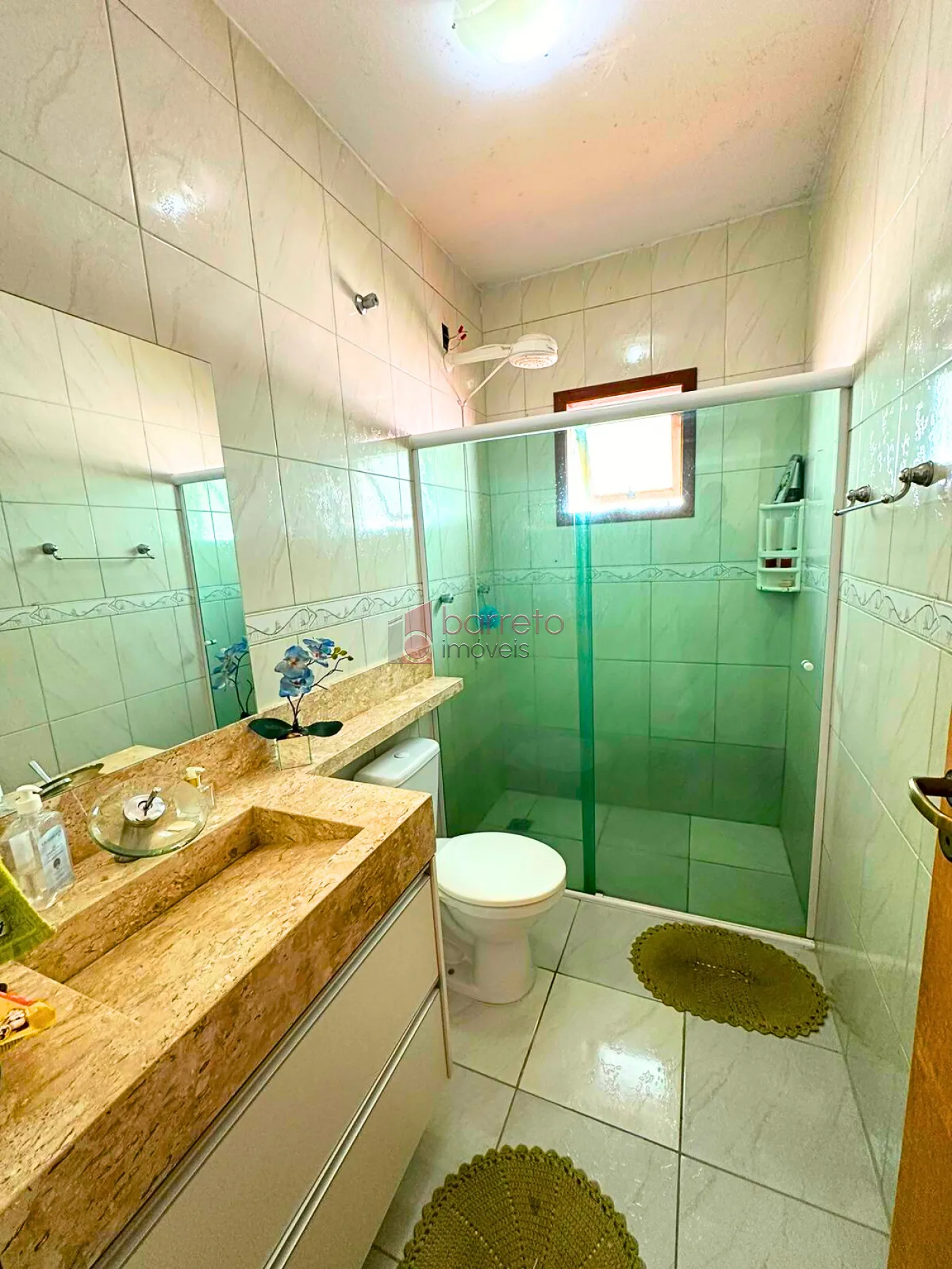 – Banheiro social com armário planejado e box blindex;
