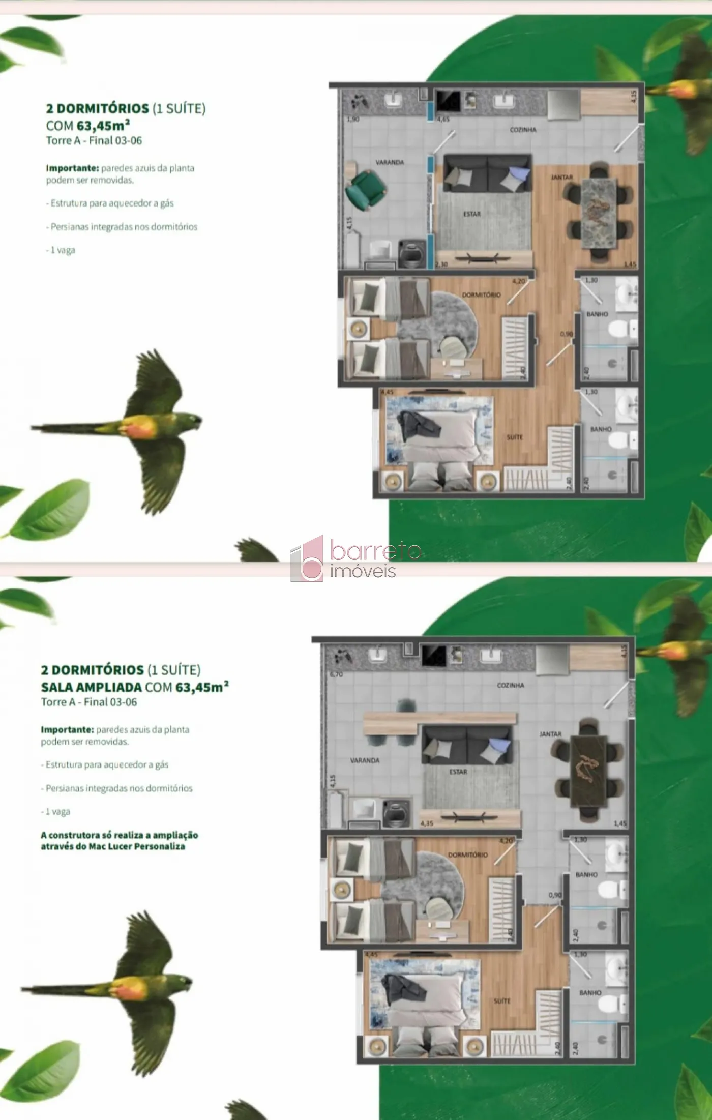 – 63,45 m² de área útil.