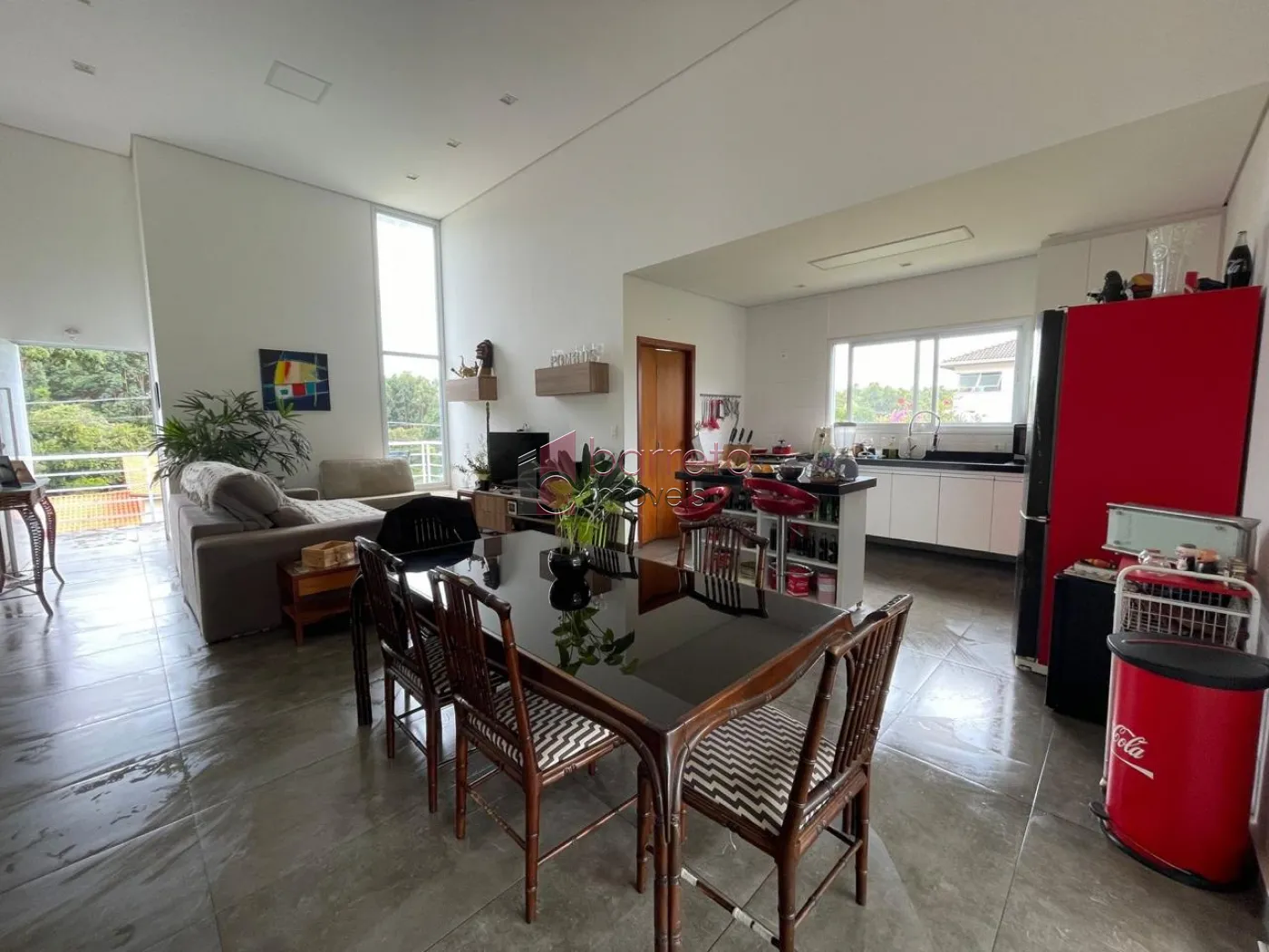 – Sala de estar e jantar conjugadas, com pé direito alto;