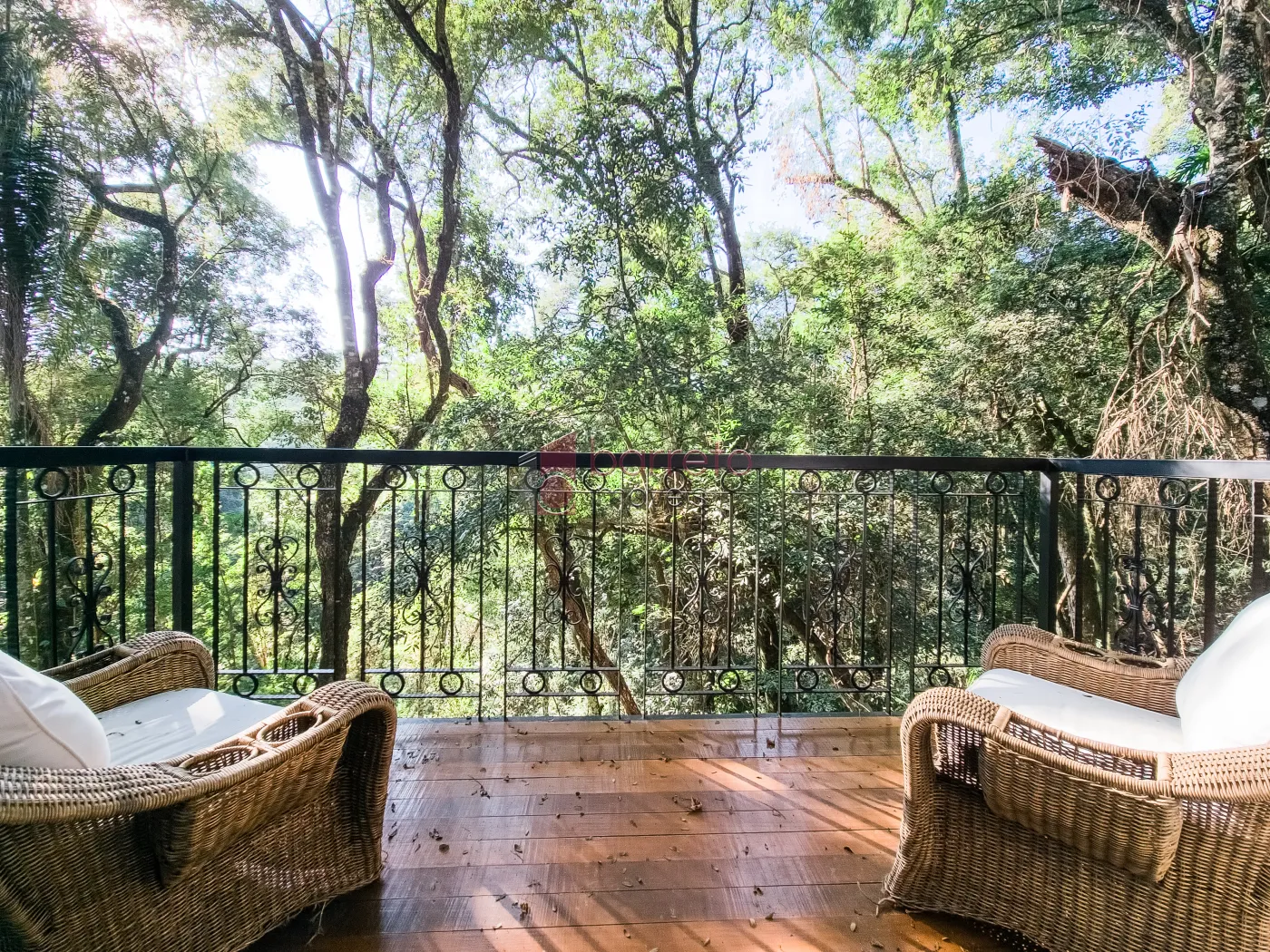 – Sala de TV tem sacada com vista incrível para o verde
