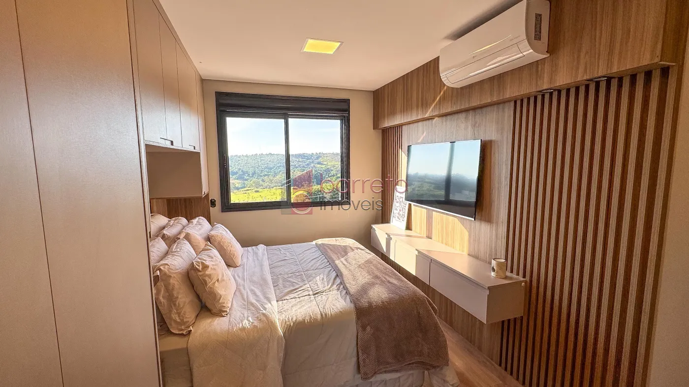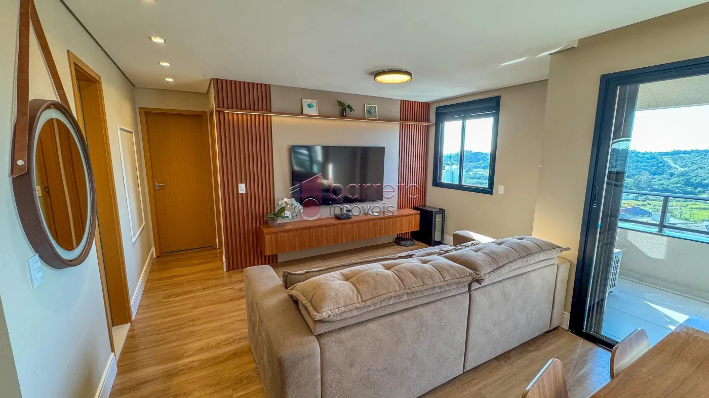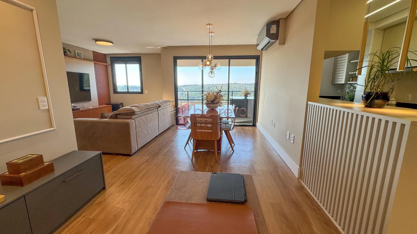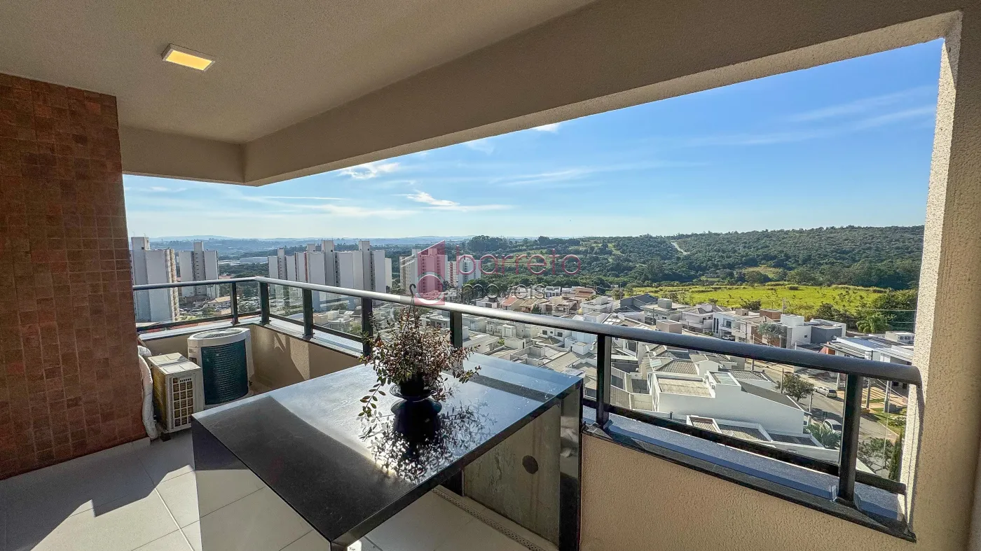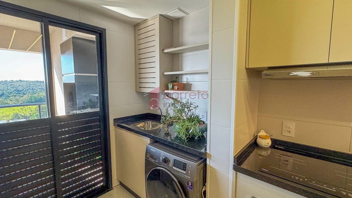 Apartamento com 95 m² de área útil, 02 dormitórios com armários, sendo 01 suíte, sala ampliada, podendo retornar o 3º dormitório, banheiro social, sala para 02 ambientes, cozinha com planejados, área de serviço com armário, varanda gourmet com vista para a Serra do Japi, 02 vagas de garagem no subsolo, box de 4m².