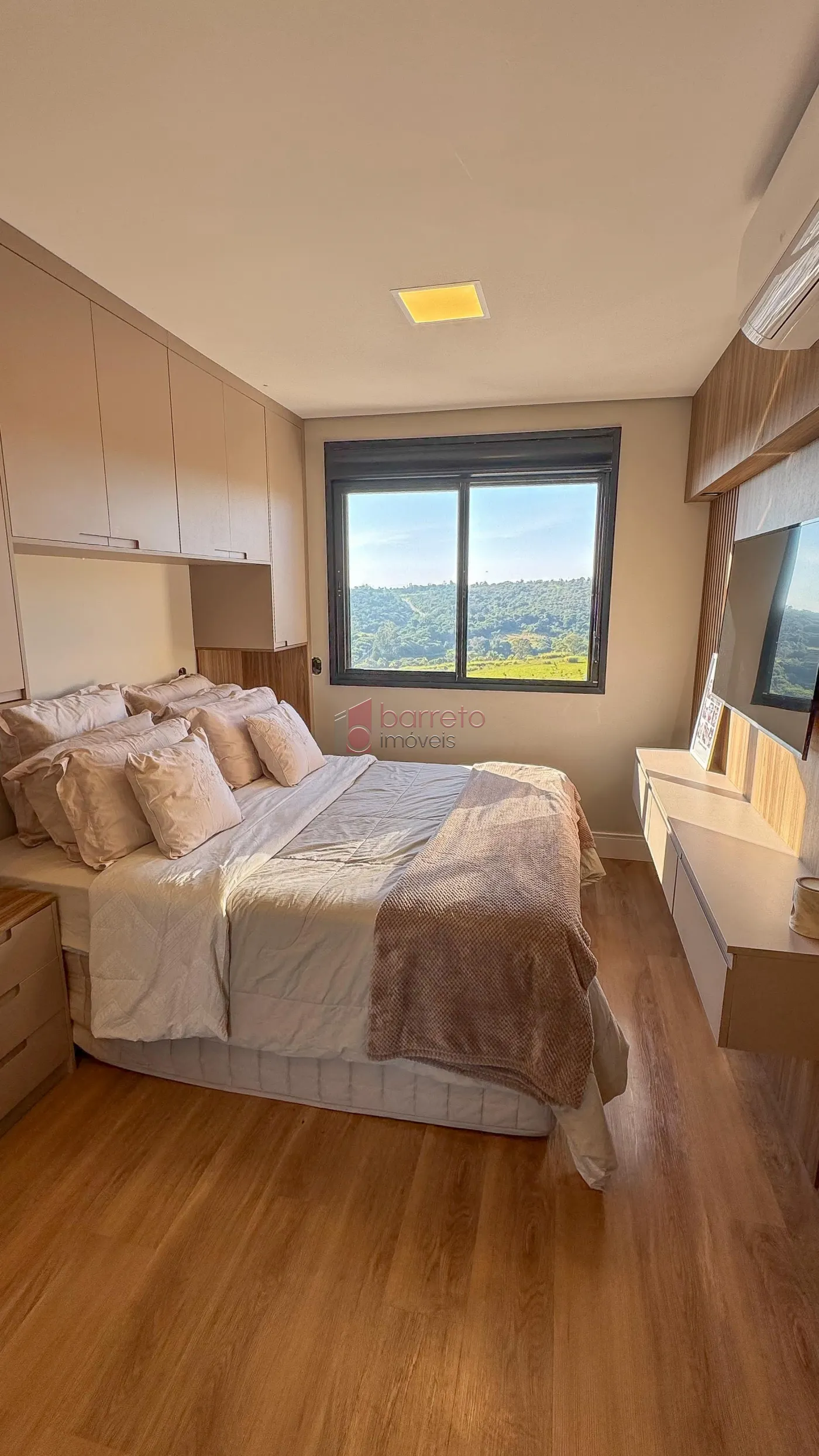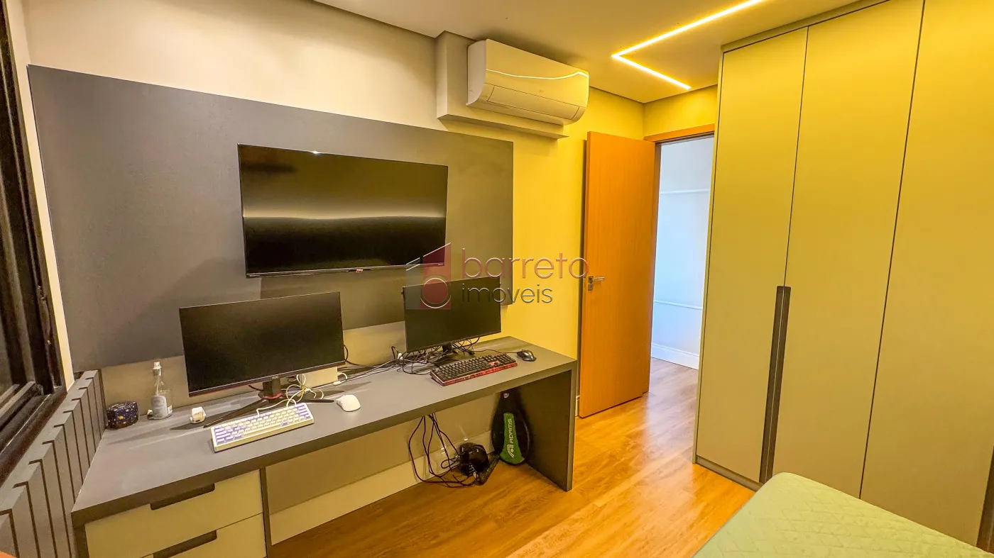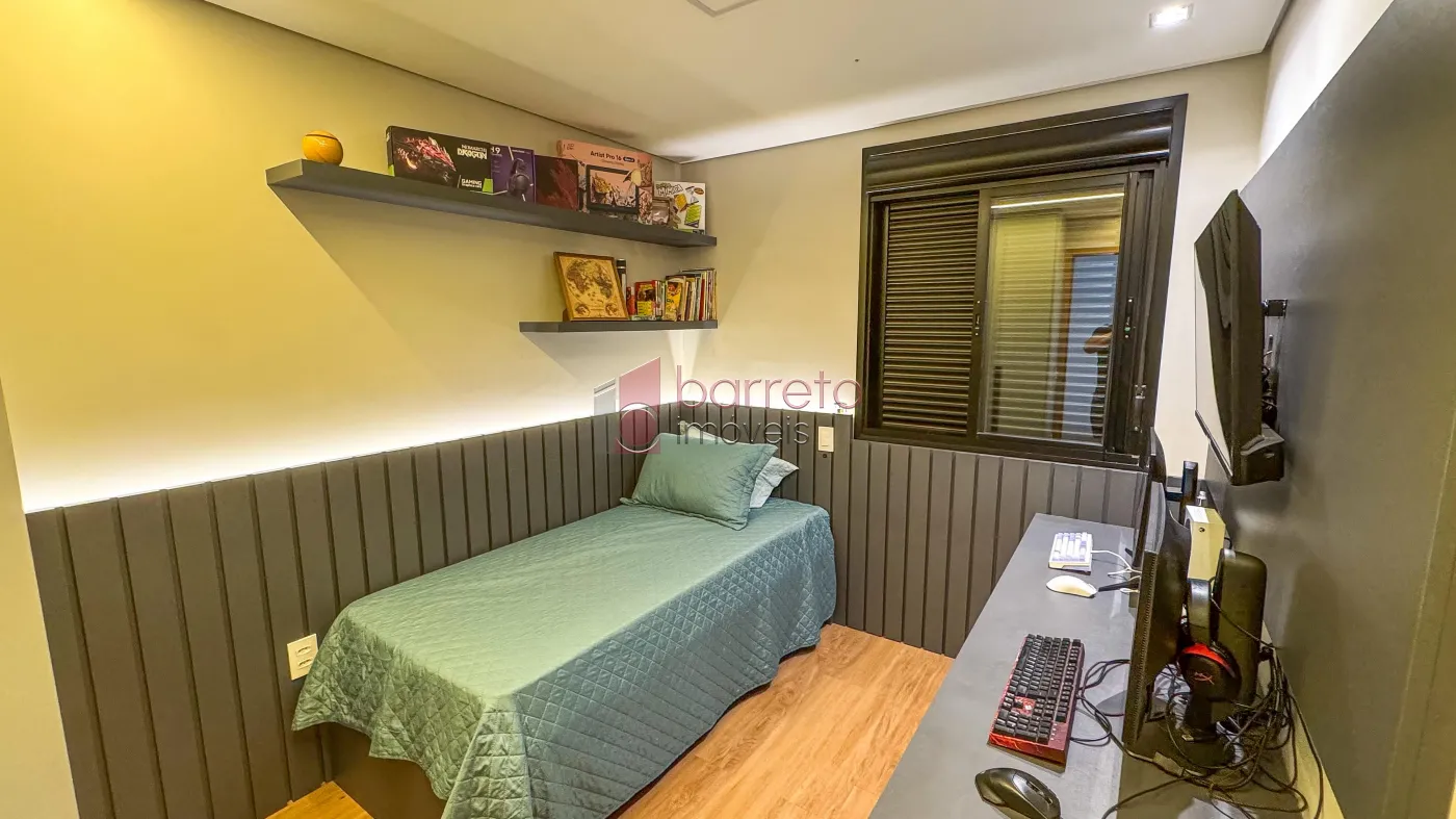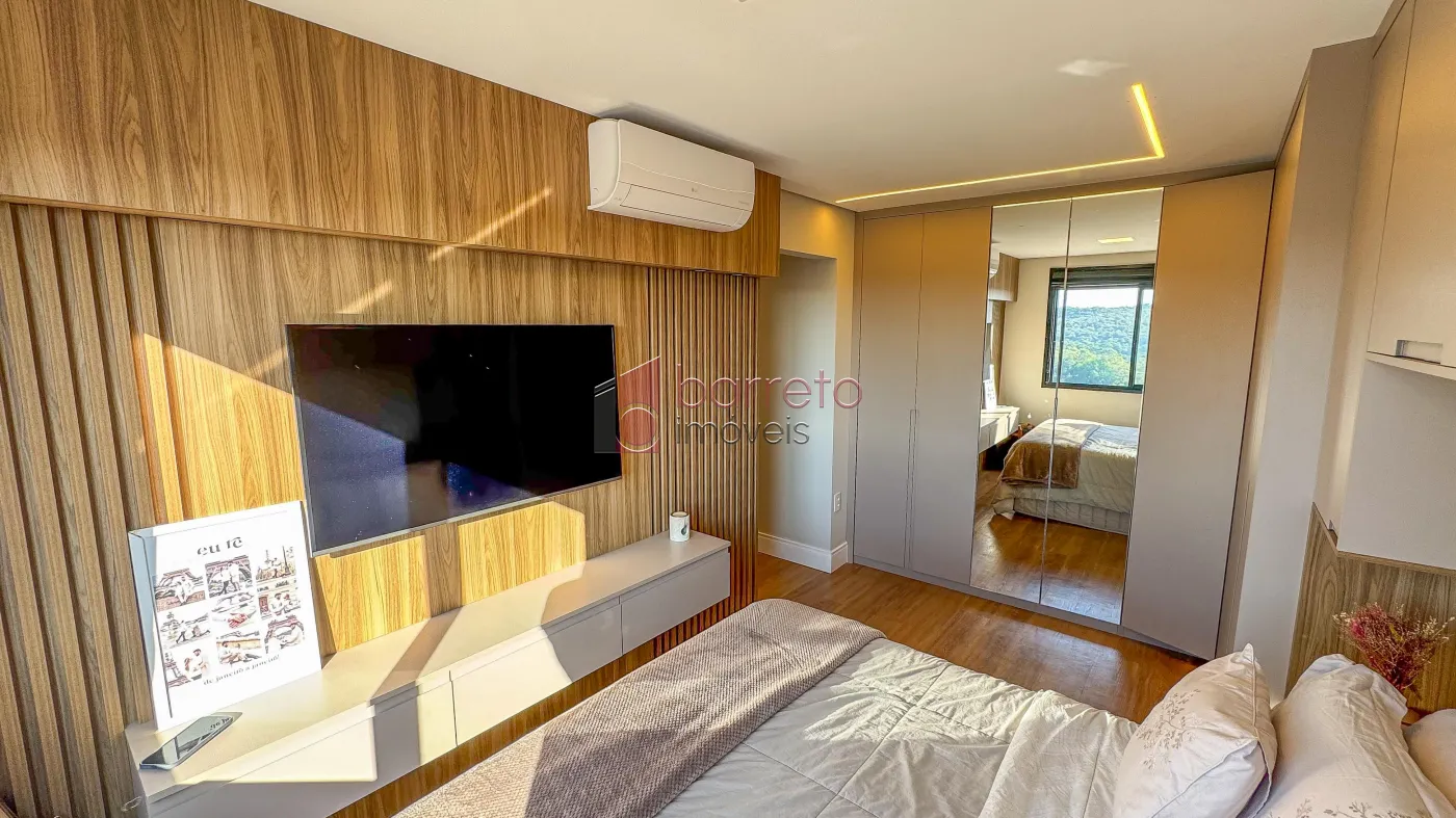 Apartamento com 95 m² de área útil, 02 dormitórios com armários, sendo 01 suíte, sala ampliada, podendo retornar o 3º dormitório, banheiro social, sala para 02 ambientes, cozinha com planejados, área de serviço com armário, varanda gourmet com vista para a Serra do Japi, 02 vagas de garagem no subsolo, box de 4m².