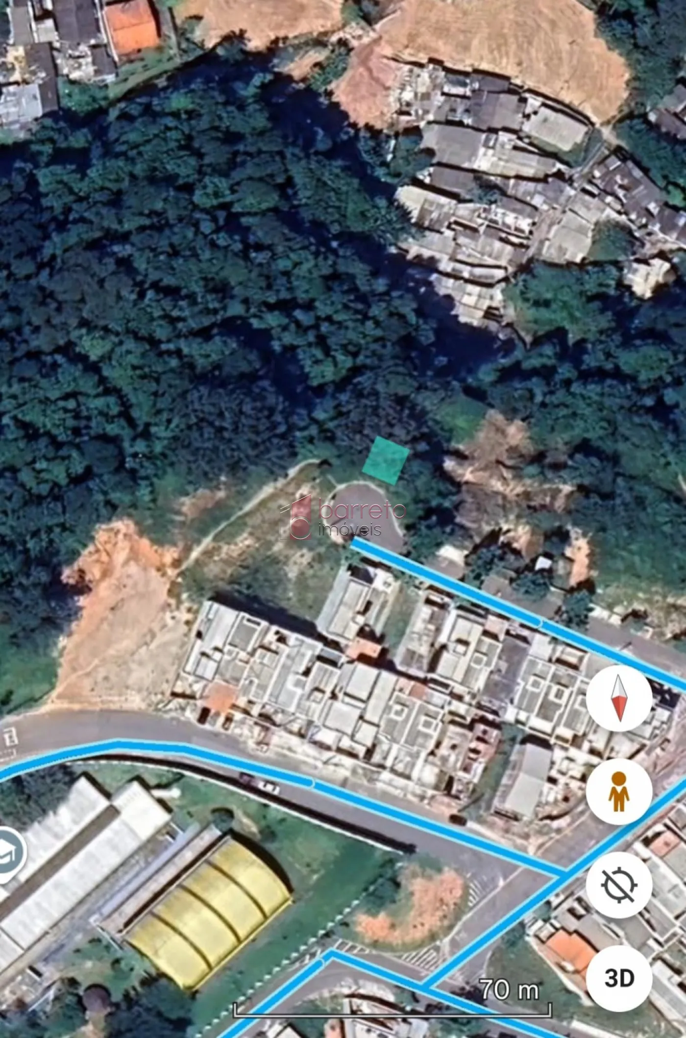 Terreno com 186 m² de área total, em bairro residencial, topografia com declive acentuado.