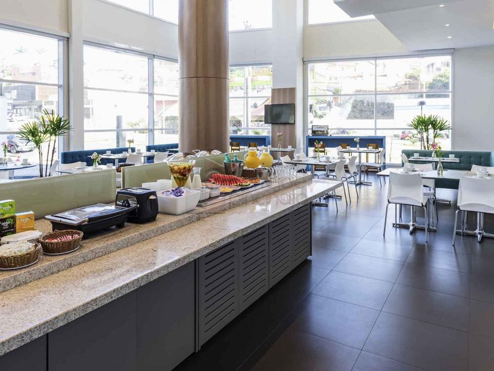 A área comum do hotel possui restaurante (DA GI), bar/lounge, academia 24h, Wi-Fi grátis, recepção 24h, business center e estacionamento com manobrista, ideal para quem busca conforto e autonomia.